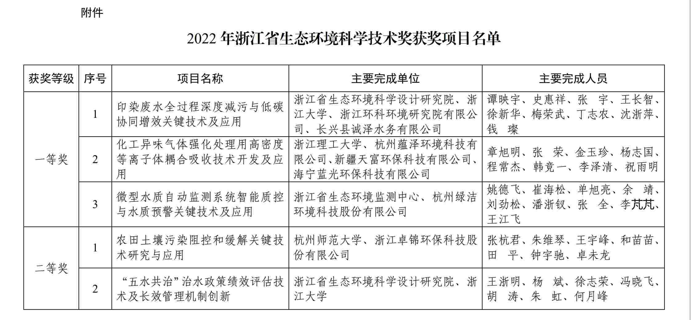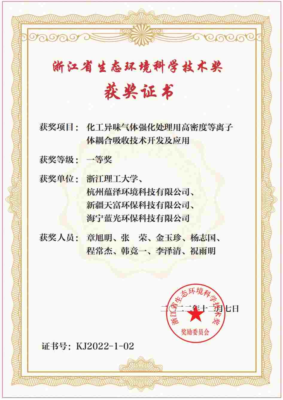 2022年12月7日,根據(jù)浙江省環(huán)境科學學會《關于開展2022年浙江省生態(tài)環(huán)境科學技術獎申報工作的通知》和《浙江省 生態(tài)環(huán)境科學技術獎勵辦法(試行)》的通知,經(jīng)學會專家組形式審查、線上專家初審、現(xiàn)場終審答辯、網(wǎng)上公示,杭州蘊澤環(huán)境科技有限公司聯(lián)合浙江理工大學等單位共同研發(fā)的“化工異味氣體強化處理用高密度等離子體耦合吸收技術” 獲得了浙江省環(huán)境科學學會專家組的高度評價與認可,榮獲浙江省生態(tài)環(huán)境科學技術獎一等獎。這是學會對我司技術創(chuàng)新、推廣應用工作的鼓勵、支持與信任。